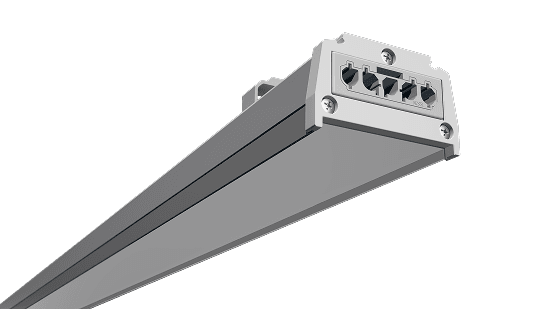 Linear LED system engineered for high ceilings and large industrial spaces where maximum luminous flux and efficiency are critical.